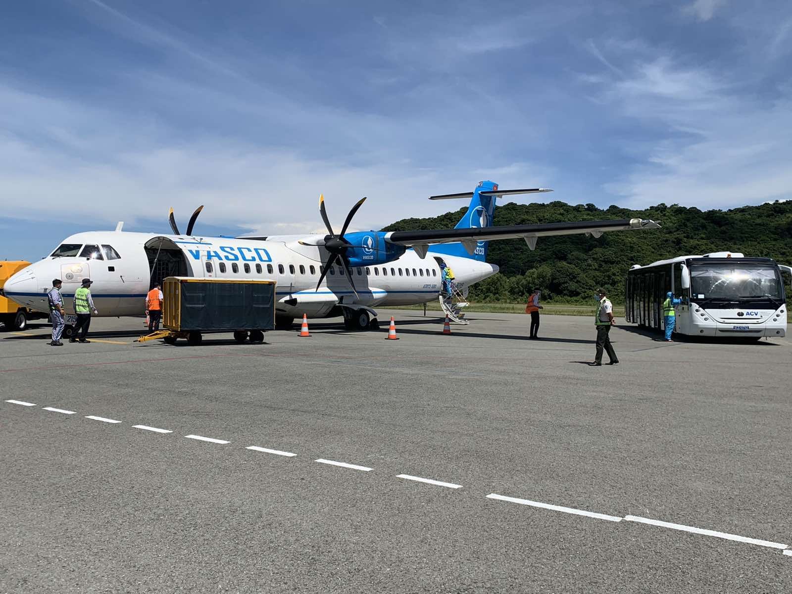 Sáng nay, Côn Đảo chào đón chuyến bay bay đầu tiên hạ cánh sau một thời gian dài giãn cách. Chuyến bay mang số hiệu 0V8059 do Công ty bay Dịch vụ hàng không VASCO (hãng thành viên của VNA) khai thác, khởi hành từ Tp HCM lúc 09h25 và đáp Côn Đảo lúc 10h30.