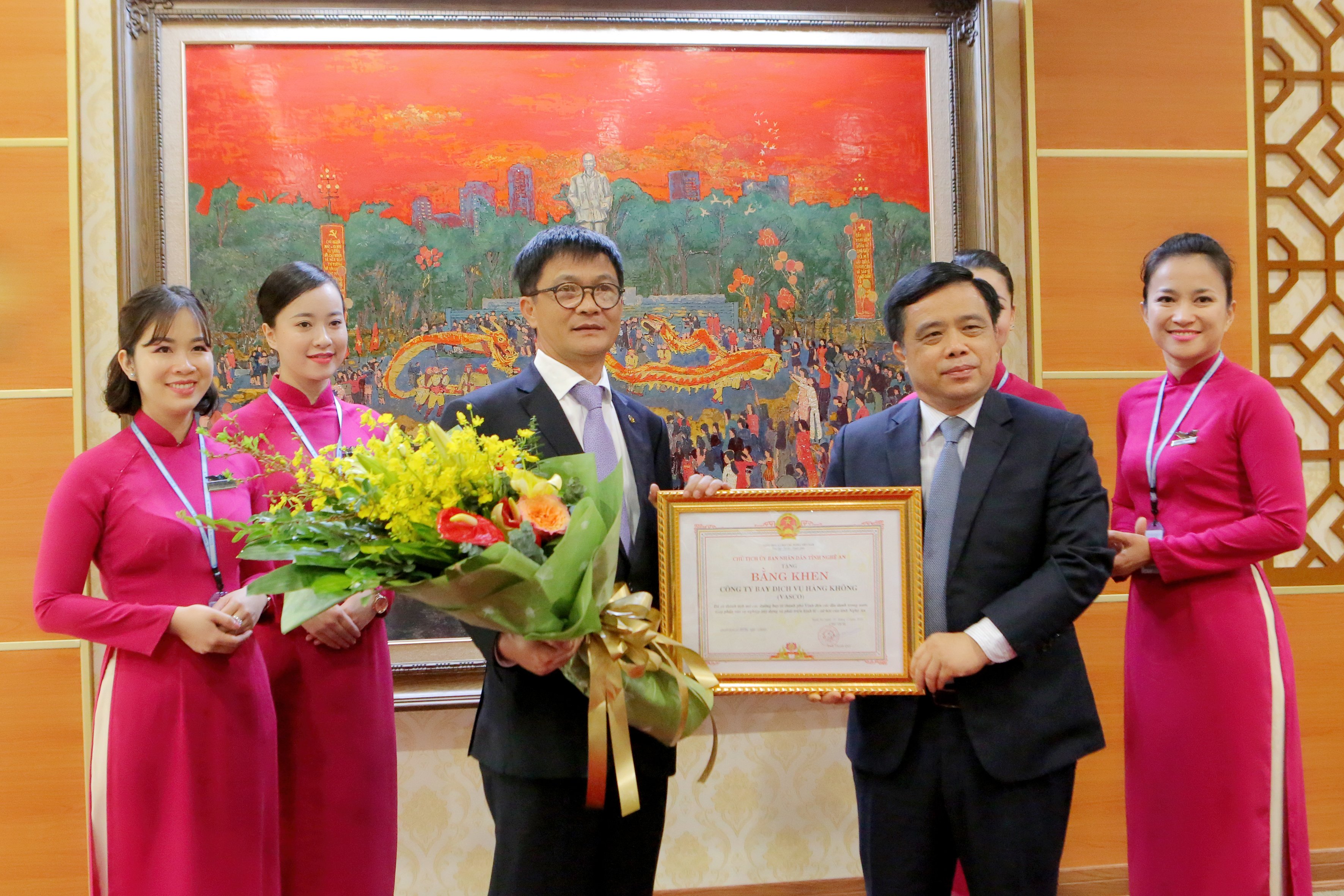 Nghệ An, ngày 15 tháng 02 năm 2019 – Sáng nay, tại Cảng hàng không Vinh, Công ty Bay dịch vụ Hàng không (VASCO – đơn vị thành viên của Vietnam Airlines) chính thức khai thác đường bay Vinh – Đà Nẵng với chuyến bay đầu tiên mang số hiệu 0V8021. Sự kiện có sự tham dự của đồng chí Huỳnh Thanh Điền – Phó Chủ tịch UBND tỉnh Nghệ An, ông Nguyễn Thái Trung – Phó Tổng giám đốc Vietnam Airlines, Giám đốc VASCO cùng đại diện các sở, ngành liên quan.