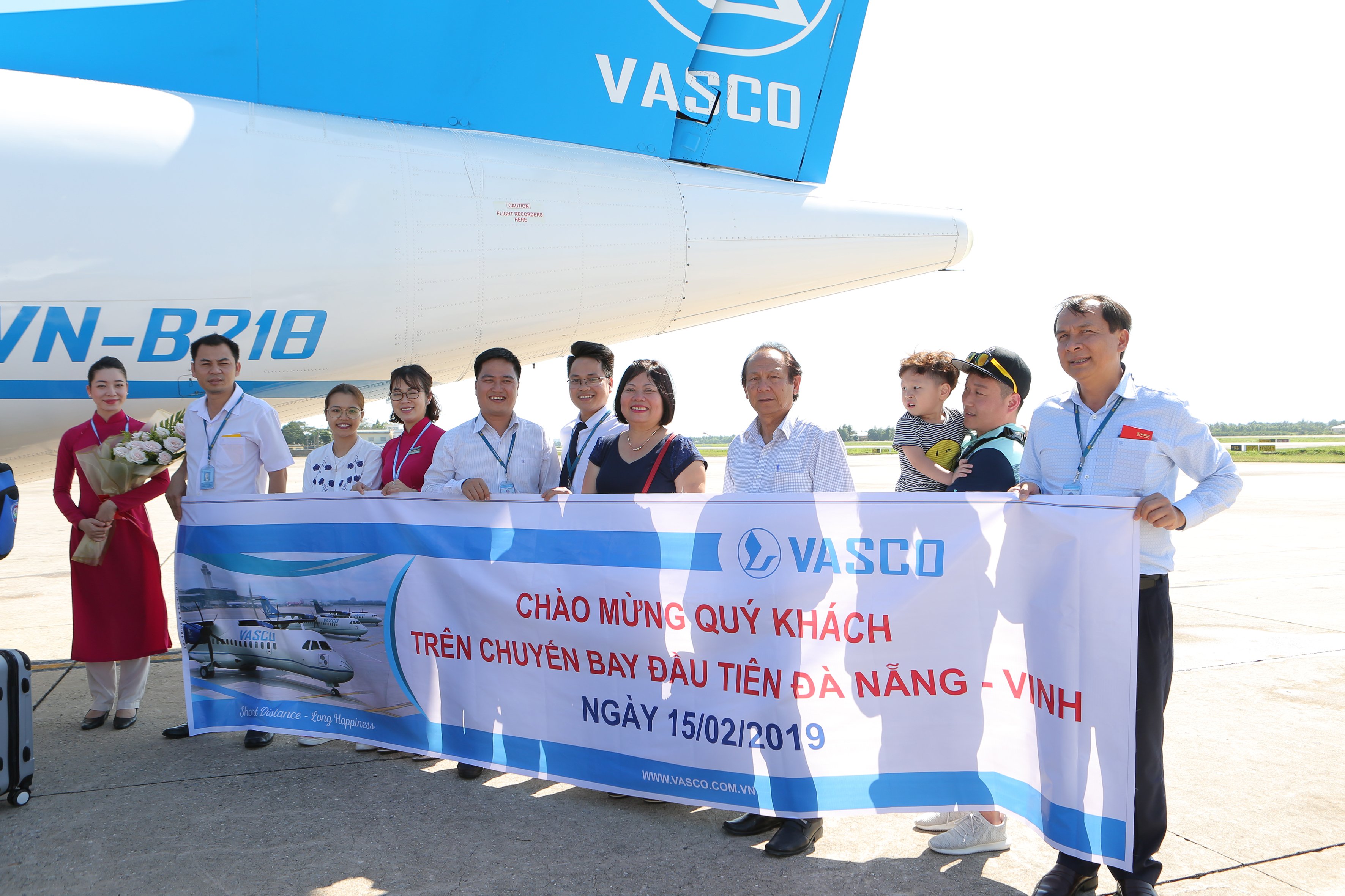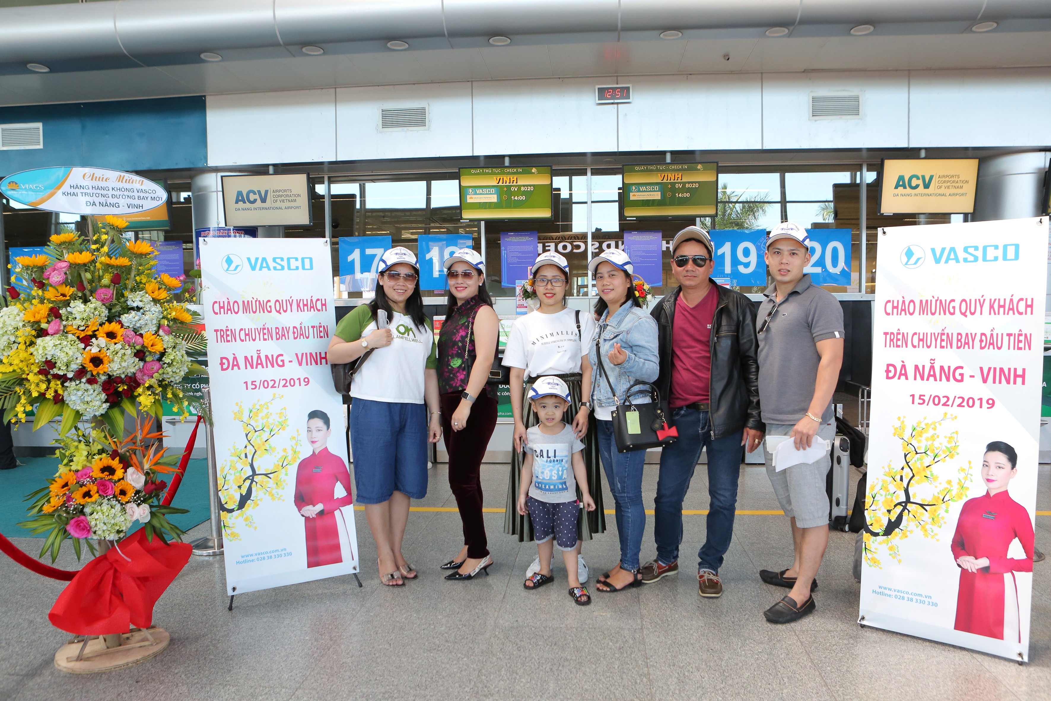 Chuyến bay đầu tiên trên hành trình Vinh – Đà Nẵng đã vận chuyển an toàn 68 hành khách từ Cảng hàng không Vinh lúc 08h20 đến Cảng hàng không quốc tế Đà Nẵng lúc 09h40 cùng ngày bằng tàu bay ATR-72. Tại sự kiện, lãnh đạo tỉnh Nghệ An đã trao tặng bằng khen cho VASCO và tặng hoa cho tổ bay cùng các hành khách đầu tiên. Mọi hành khách trên chuyến bay đặc biệt đã nhận được quà lưu niệm khi làm thủ tục check-in và lì xì nhân dịp năm mới từ VASCO.