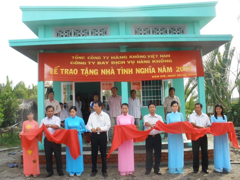 Cùng với hoạt động khai thác các đường bay góp phần thúc đẩy, phát triển kinh tế – xã hội tại các địa phương, Công ty Bay Dịch Vụ Hàng Không còn quan tâm đến công tác đền ơn đáp nghĩa, chăm lo cho gia đình chính sách. Ngày 29/12/2010, tại Ấp Tân Điền A, xã Tạ An Khương, huyện Đầm Dơi, tỉnh Cà Mau, Công ty Bay Dịch Vụ Hàng Không – Tổng công ty Hàng Không Việt Nam tổ chức lễ trao tặng nhà tình nghĩa cho cụ bà Nguyễn Thị Ưng. Tham dự buổi lễ còn có đại diện Tỉnh đoàn Cà Mau, UBND huyện Đàm Dơi.