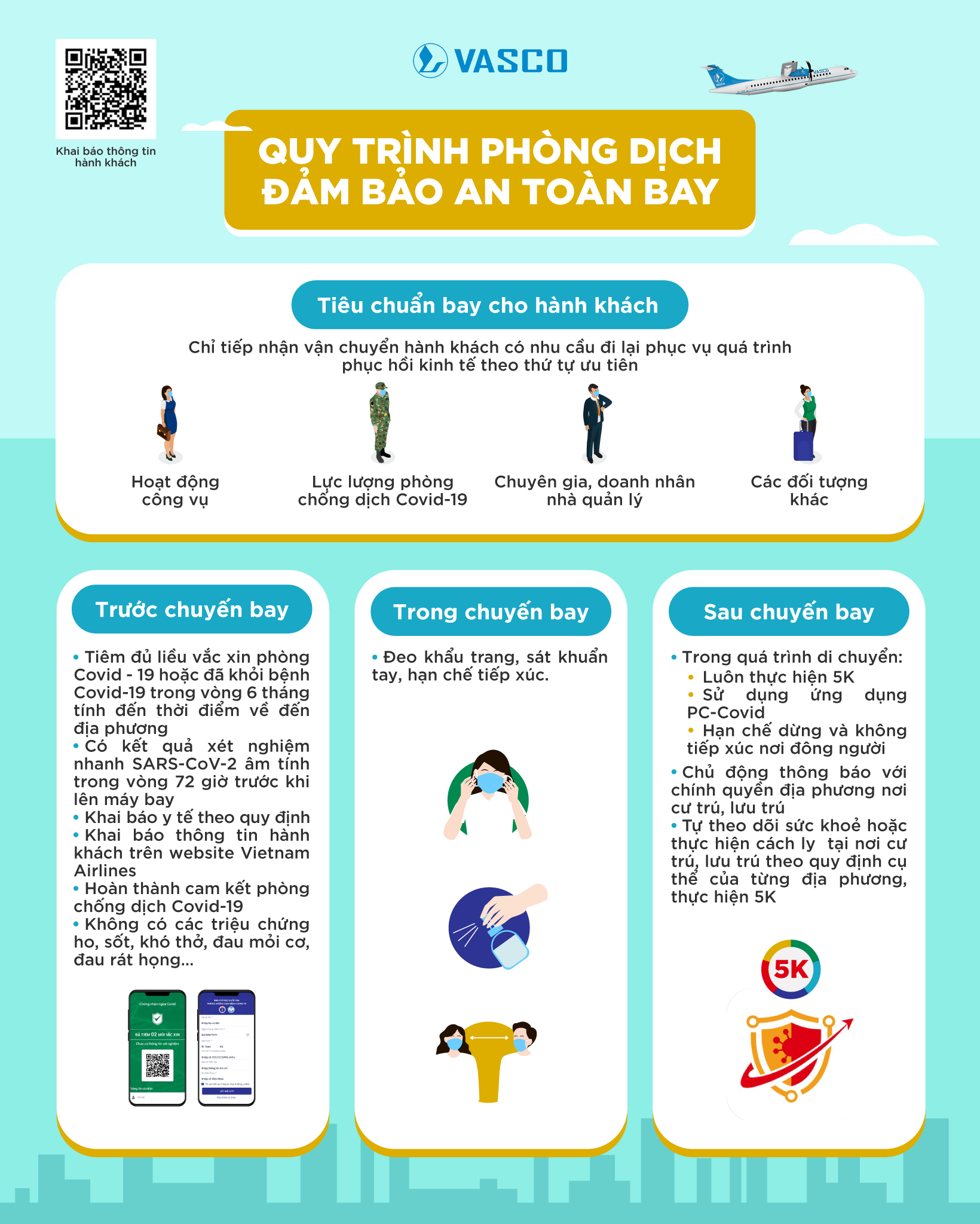 ? Sẵn sàng cho hành trình bay cùng VASCO, bạn hãy chuẩn bị đầy đủ các thủ tục, giấy tờ cần thiết, thực hiện các quy định phòng chống dịch của nhà chức trách, địa phương nơi xuất phát, nơi đến.